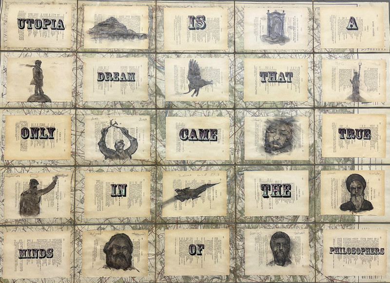 His artistic research is interested in the diversity of cultures in a vast chronological perspective. He develops a biographical and political dimension to end up with cycles of drawings and sketches with a dreamlike and poetic character. It raises the question of the state of war and human existence through the many changes in Iraqi society, be it cultural, political or economic changes. The pictorial elements express the artist’s deep commitment to the great questions of our time: the place of the individual in the midst of the conflicts and changes that are shaking the world and touching the human being at the heart of his life. The red line that runs through all his artistic work originates in the cradle of humanity: Mesopotamia. This is where the artist ‘s interrogation begins, an interrogation that he shows through a panorama of striking historical and cultural facts. Through his drawings, Bahir, like a screenwriter, unfolds his reflections with the help of images of lived or dreamed events. On pages of ancient books, he unfolds his world, his dreams and the harsh reality.