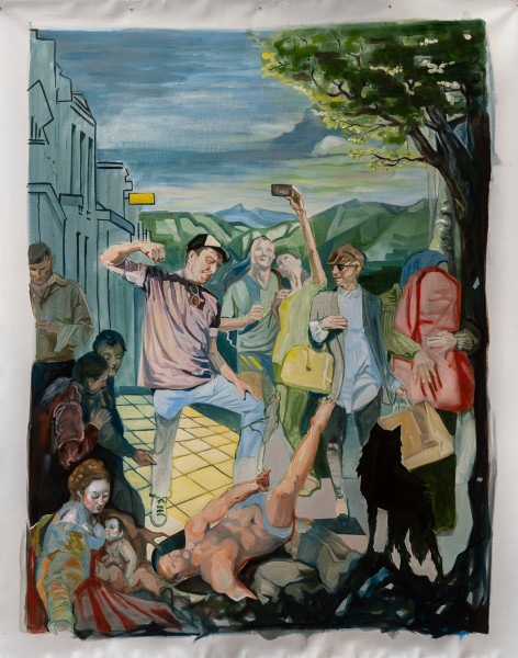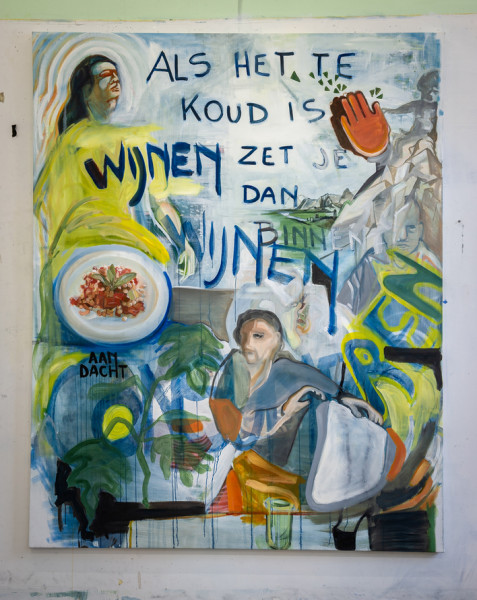 The answer of Kristof Van Heeschvelde is that the cultural image should replace the potato. Can we say with Kristof that art is more nourishing than physical food? It reminds of the ascetic saints of the past who would fast and focus their minds on God. Is Kristof Van Heeschvelde then a religious artist as he transcends the physical? The theme of religion is present in ‘Wijze mannen/Wise Men’(2020), where the adoration of the infant Christ by the three wise men is placed in a radical new context by the presence of an everyday mother. Is Kristof Van Heeschvelde a radical painter? He is radical to the extent that he uses a classical realist art for messages which are contemporary. He uses the technical quality of a master of the past combining often ironic and witty layers of meaning.